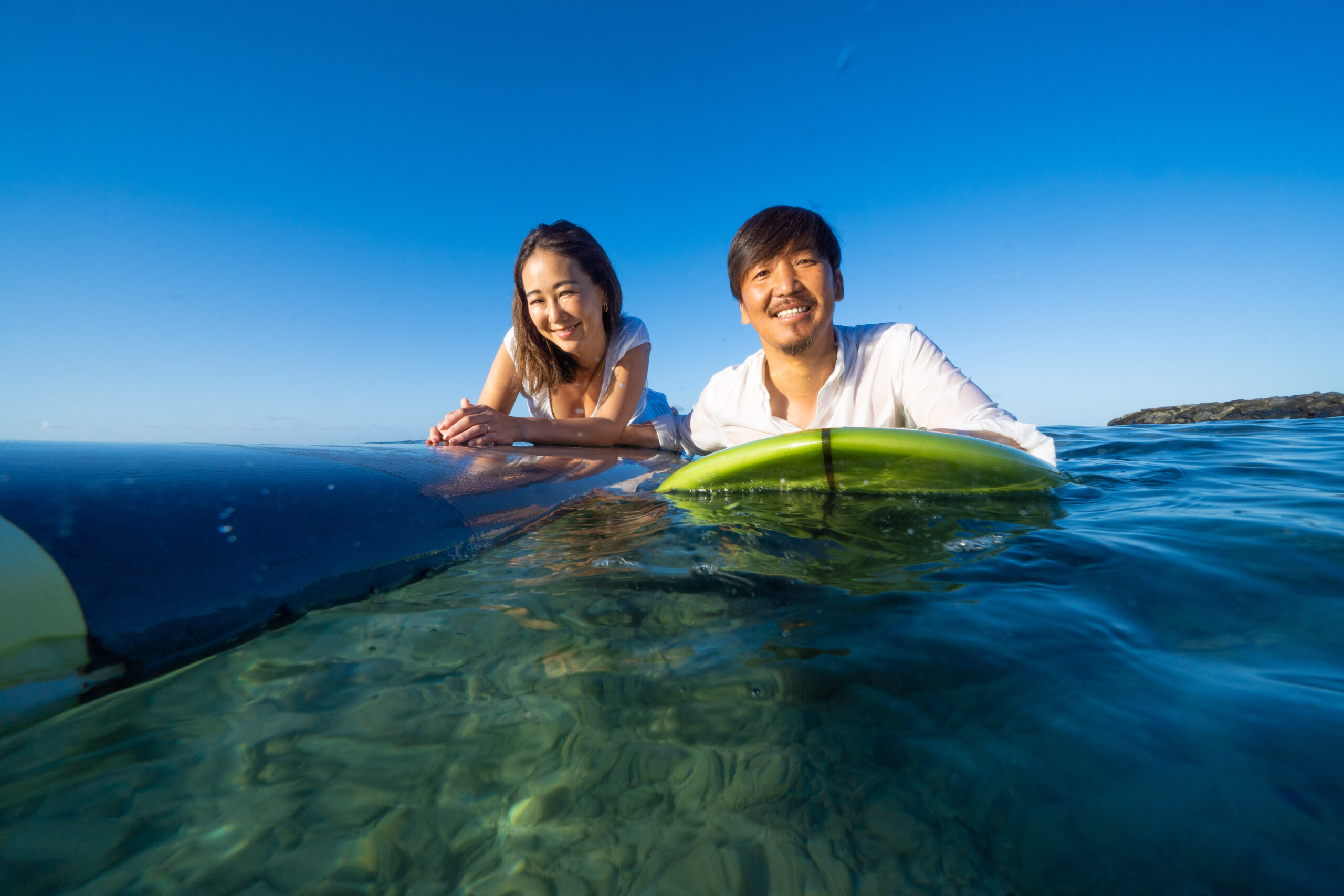 また、サーフィンが未経験でも挙式と撮影は浅瀬で行い、インストラクターもつくので安全面でも安心です。