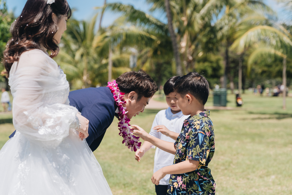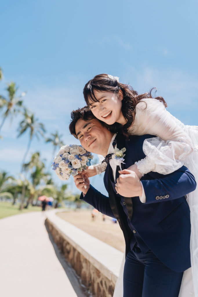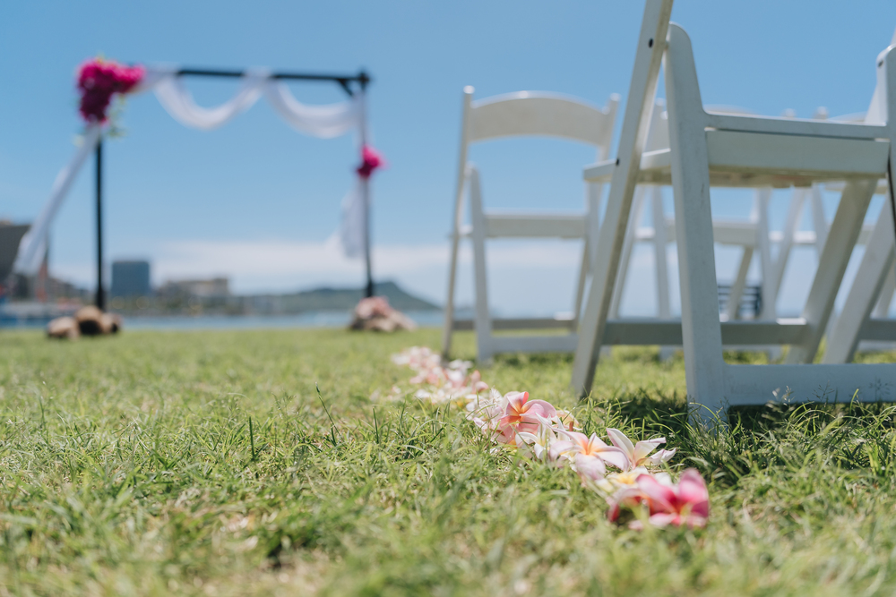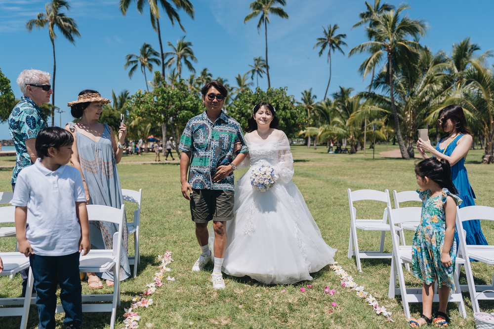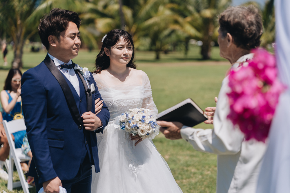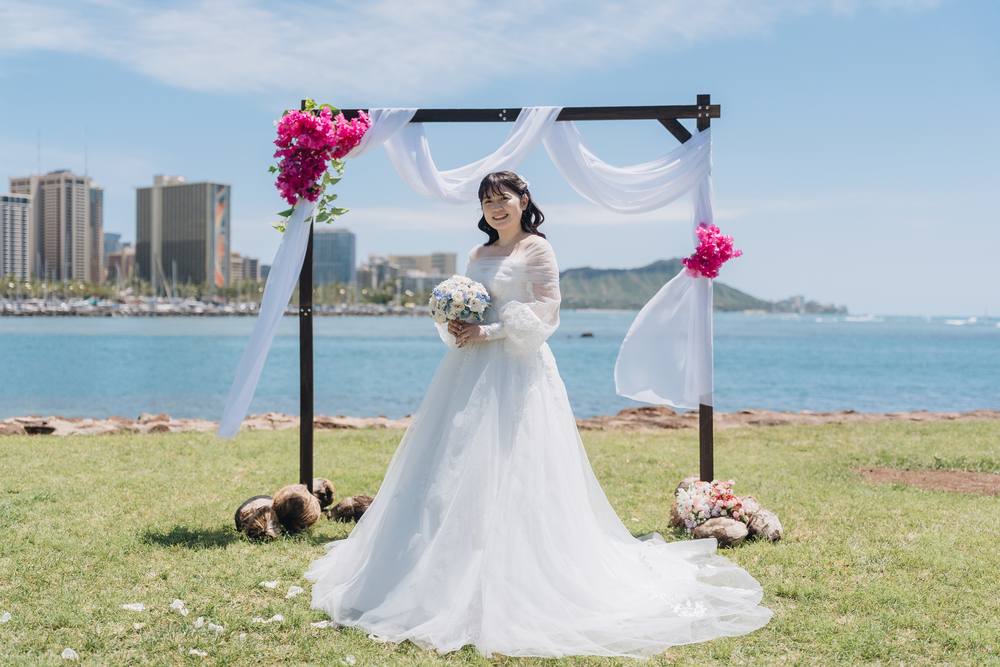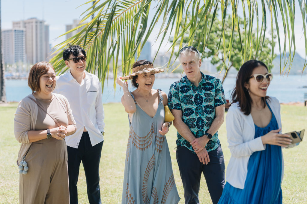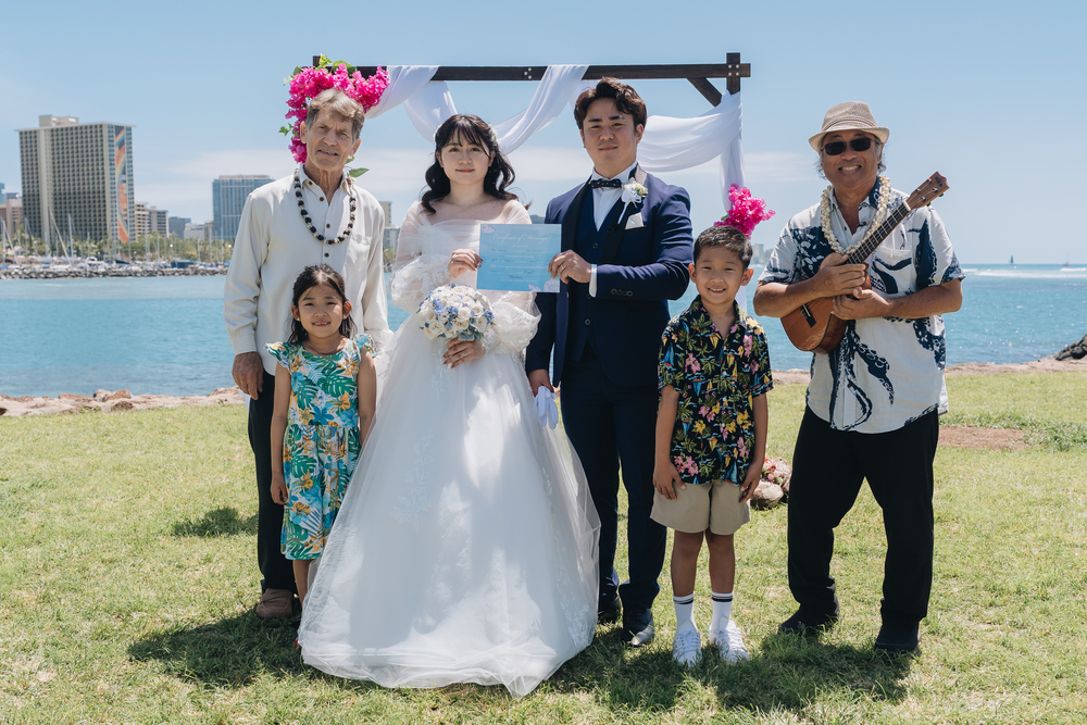 ハワイの空の下 マジックアイランドを背景に アットホームなウェディングが楽しめる マジックアイランド
