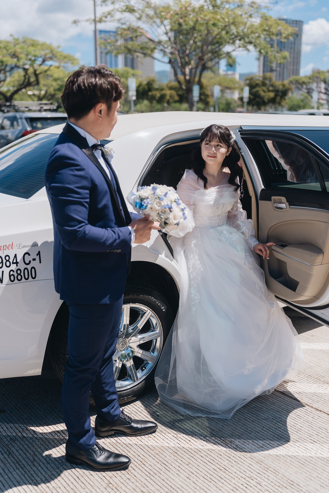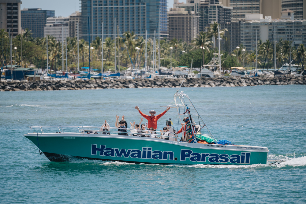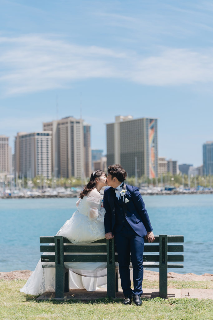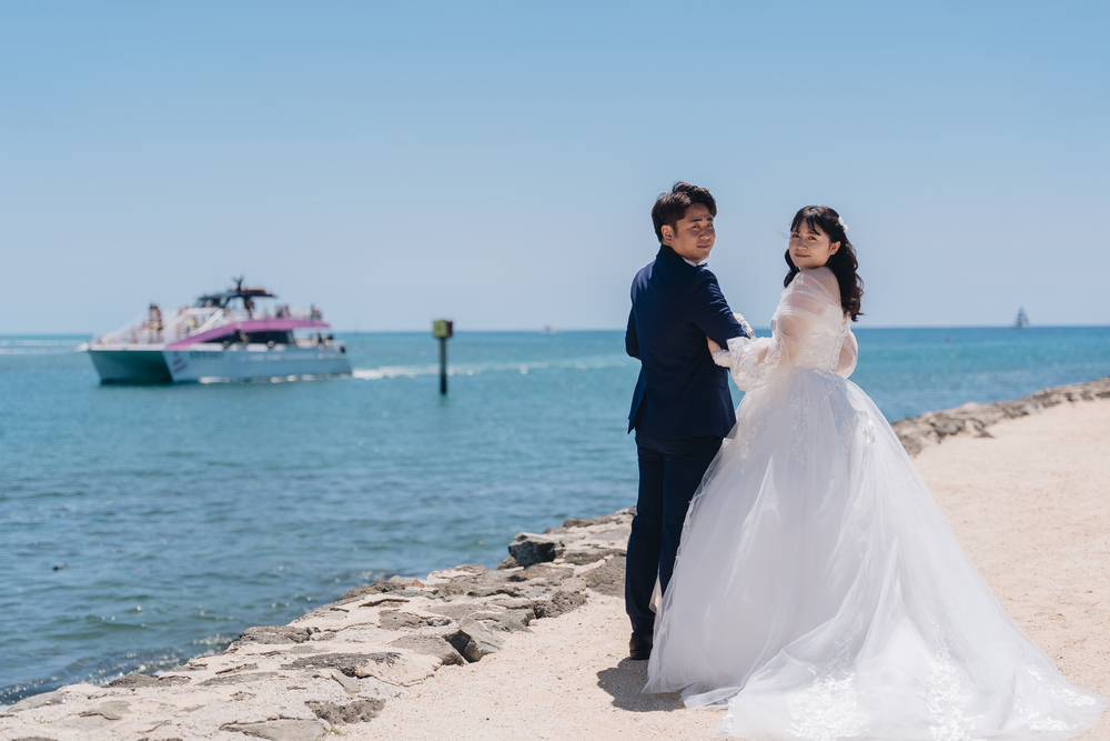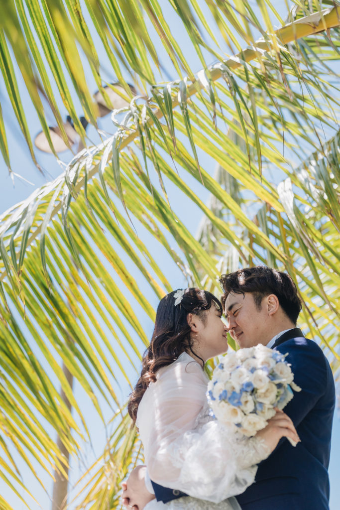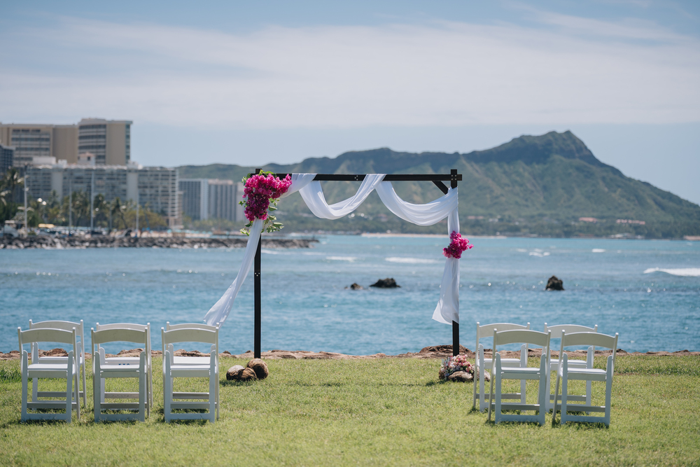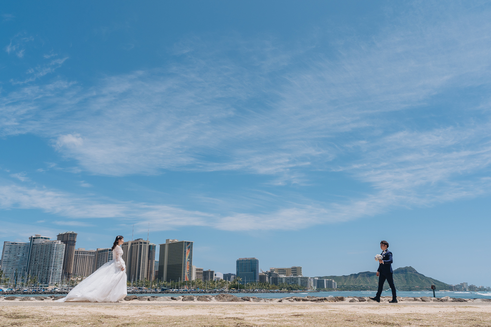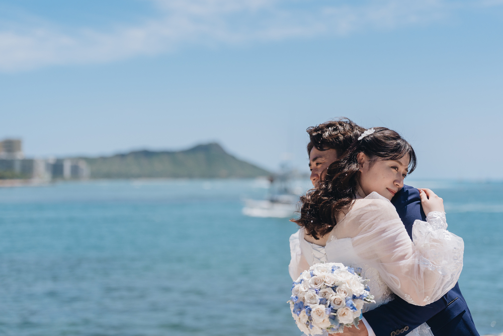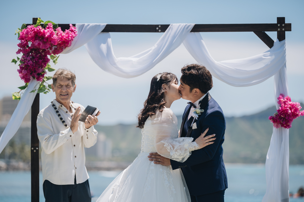 ハワイの空の下 マジックアイランドを背景に アットホームなウェディングが楽しめる マジックアイランド