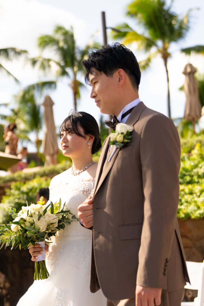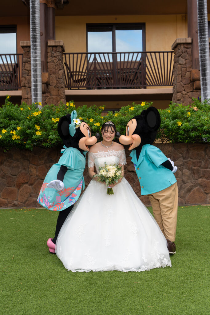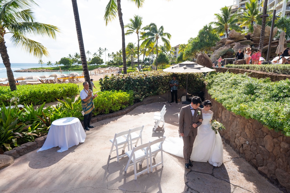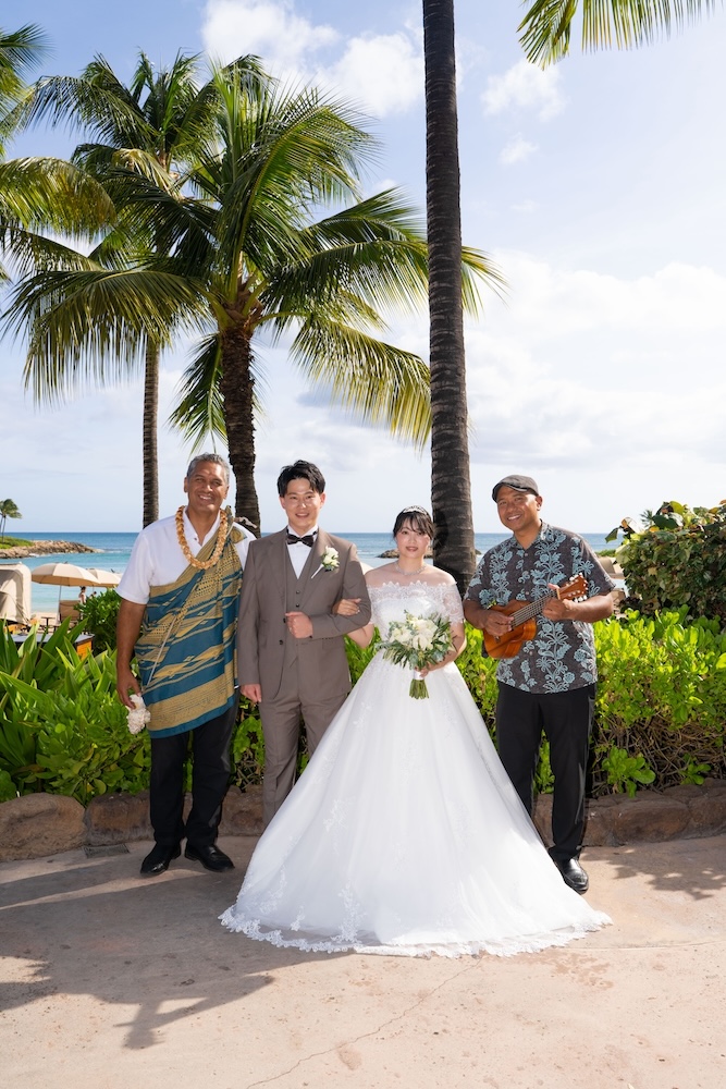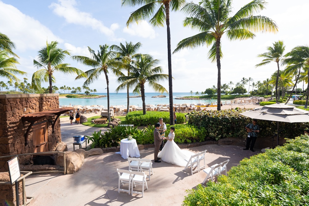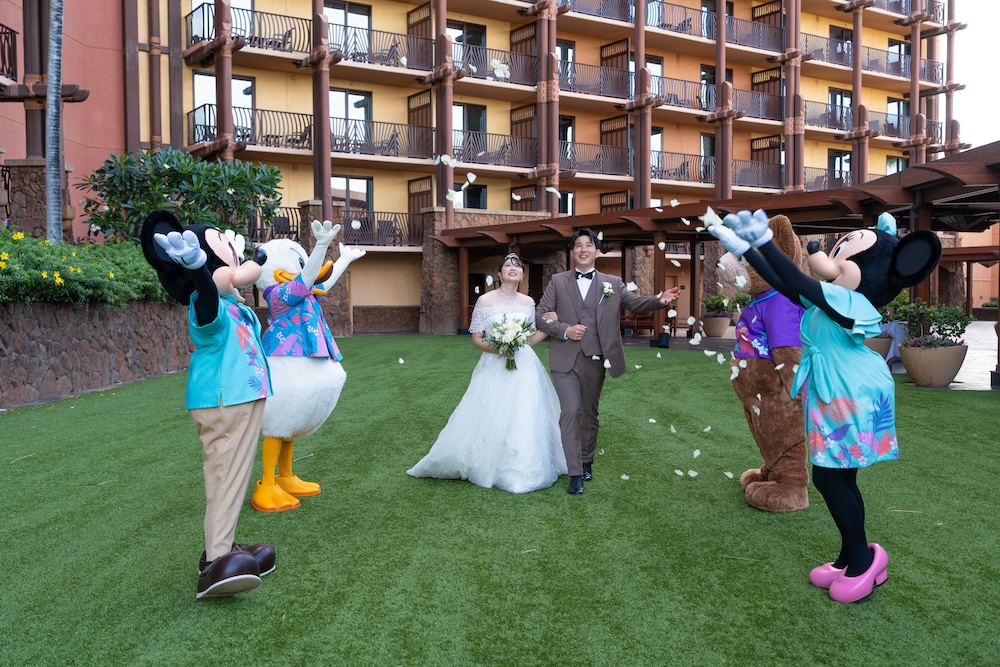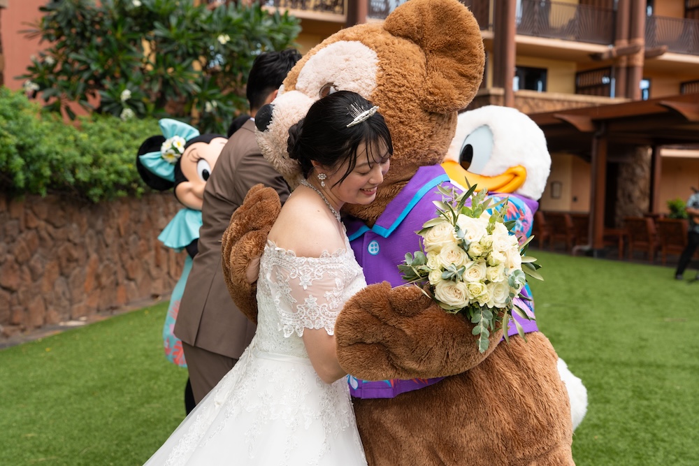2025.05.13 アウラニホテル ディズニー リゾート ウェディング★Voice★ 投稿者:kaori 投稿公開日:2026/01/13 投稿カテゴリー:お客様の声 アウラニホテルで大好きなキャラクターにお祝いしてもらえるハワイウェディング 挙式後のキャラクターセレブレーションは一生の思い出に! Date 挙式会場:アウラニ ディズニー リゾート ウェディングフォトグラファー:アウラニ ディズニー リゾートフローリスト:アウラニ ディズニー リゾートウェディングプランナー:Rei ★Voice★ Q.1 レアウェディングを選んだ理由があれば教えて下さい。お問い合わせの段階で何社かと連絡を取らせていただいていたのですが、レアウェディングさまが一番丁寧で、返信も早く安心できたからです。Q.2 実際に挙式の日を迎えられていかがでしたか?挙式の日の中で一番印象に残っている出来事などあれば教えて下さい。挙式の前日の晩からソワソワしておりましたが、怪我などが無いようなるべく落ち着いて過ごすよう心掛けておりました(笑)当日はヘアメイクの時点で「いよいよだな…」と思い、無事に挙式を迎えられることの喜びを噛み締めつつ夢心地でした。アウラニディズニーリゾートでの結婚式ということで、キャラクターセレブレーションを一番楽しみにしておりましたので、キャラクターに会えた時は感無量でした。また、挙式中に近くのプールに居た方々が祝福してくださり、わっと盛り上がった場面があり、日本ではあまり感じられることのない温かさを感じられて新鮮で嬉しかったです。Q.3 挙式のご準備はいかがでしたか?ドレスの持ち運びが大変ではありましたが、他はスムーズに準備することができました。Q.4 ハワイウエディングで何かこだわったことはありましたか?リングピローやウェルカムボードなど、小物のモチーフを海で統一してハワイ感を意識していました。参列者なしでの挙式でしたが、せっかくのハワイウエディングでしたので、小物にこだわりました。Q.5 ハワイウエディングをして良かったということがあれば教えてください。・日本には無い素晴らしい景色(海や自然)の中で挙式を行うことができ、また撮影をしていただけたこと。・Q2で記載したようにアットホームな雰囲気で挙式を行えたこと。周囲の方々からたくさんお声掛けいただき、祝福してもらえて、日本ではできない経験ができました。・ハワイが特別な地になったこと。今後ハワイ旅行をする際も、「挙式をした地」として思い出に残り続けることが嬉しいです。Q.6 先輩カップルとして、未来の新郎新婦様にひとことアドバイスをお願いします。異国の地での挙式は、分からないことや不安なことがたくさんあるかと思いますが、どんな些細なことでもプランナーさんに質問すべきだと思います☻レアウェディングさまは全ての質問にとっても丁寧に答えてくださいますので、そこで不安を解消していくことが、自分なりの挙式を形作っていける道標になります! おすすめ 2023.2.25 ハレクラニ+ハウテラス★Voice★ 2024/02/14 2019.05.22 モアナルアガーデン ハワイアンスタイル 2019/12/20 2023.9.11 マジックアイランド(Wウェディング) 2024/09/10