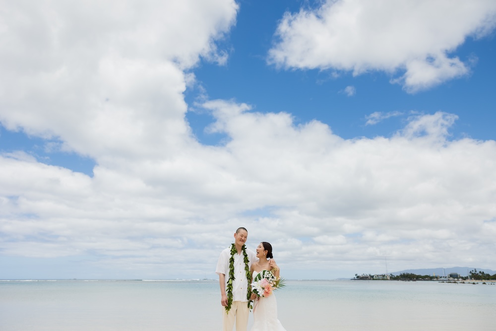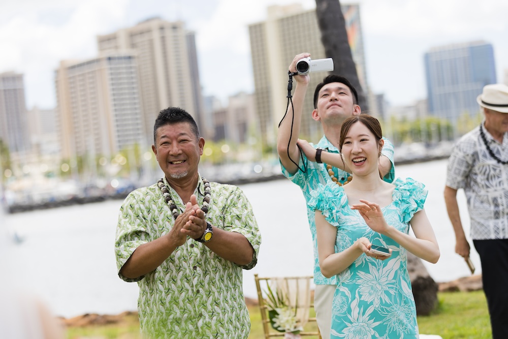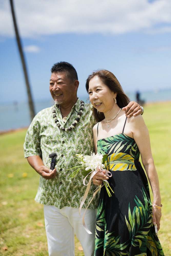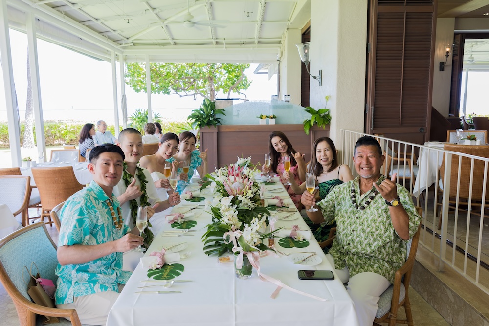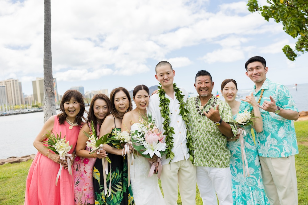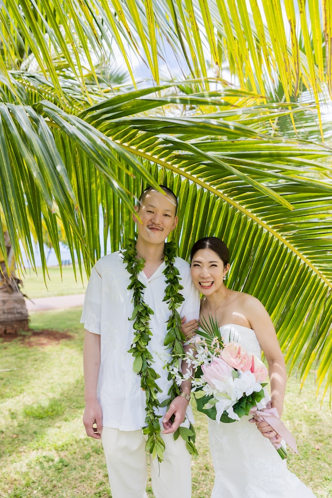 2025.6.13 マジックアイランド+オーキッズ ★Voice★ 投稿者:kaori 投稿公開日:2026/02/22 投稿カテゴリー:お客様の声 ハワイオアフ島 ビーチウェディングで人気のマジックアイランド新郎様やご家族とのファーストミートの前にご準備された新婦様からのお手紙に全員が感動ゲスト参加型の結婚証明書やハワイらしいコーディネートもこだわりのポイントです Movie Date 挙式会場:マジックアイランドレセプション会場:オーキッズフォトツアー:アラモアナビーチ、カピオラニパーク、カイマナビーチフォトグラファー:Jason(Visionari)ビデオグラファー:Starr Win Projectsフローリスト:Floret Mメイクアップアーティスト:Style Free Mihoウェディングプランナー:Kaori Voice Q.1 レアウェディングを選んだ理由があれば教えて下さい。1日1組限定、そして型にはめられたありふれた式ではなく、自分の理想とするオリジナルな結婚式が出来ると感じたから。Q.2 実際に挙式の日を迎えられていかがでしたか?挙式の日の中で一番印象に残っている出来事などあれば教えて下さい。ファーストミート、ファミリーミートのみんなの顔や反応が、一番印象に残っています。Q.3 ハワイウエディングをして良かったということがあれば教えてください。ハワイらしい自然の中で式が出来た事、海の目の前で出来た事。またカジュアルな感じでリラックスして楽しめた事。Q.4 当日お手伝いさせていただいたスタッフはいかがでしたか?とっても優しく、そして楽しい雰囲気を作ってくれ、最高なチームでした!Q.5 挙式のご準備はいかがでしたか?自分がやりたい事が少しずつ形になっていったので、大変でしたが楽しかったです。Q.6 ハワイウエディングでこだわったところはどこですか?ロケーション、テーブルコーディネート、結婚証明書Q.7 ご準備されたアイテム類について教えてください。ブランド名や準備方法などウェディングドレス:sustina dressタキシード:アロハシャツ→two palmsペーパーアイテム:モンステラの紙に名前を書く、手紙サンクスギフト:はちみつ、刻印入りスプーンなどQ.8 参列者にはドレスコードをお伝えされましたか?またどのようにご準備されましたか?リゾートワンピースやムームー、アロハシャツQ.9 先輩カップルとして、未来の新郎新婦様にひとことアドバイスをお願いします。悔いの残らないよう思いっきり楽しんでください! おすすめ 2020.02.09 モアナルアガーデン人前式★Voice★ 2022/03/20 2020.01.21 セントラルユニオン中聖堂 + カフェジュリア★Voice★ 2021/06/14 2023.6.24 ハレクラニコートヤード+オーキッズ★Voice★ 2024/07/05