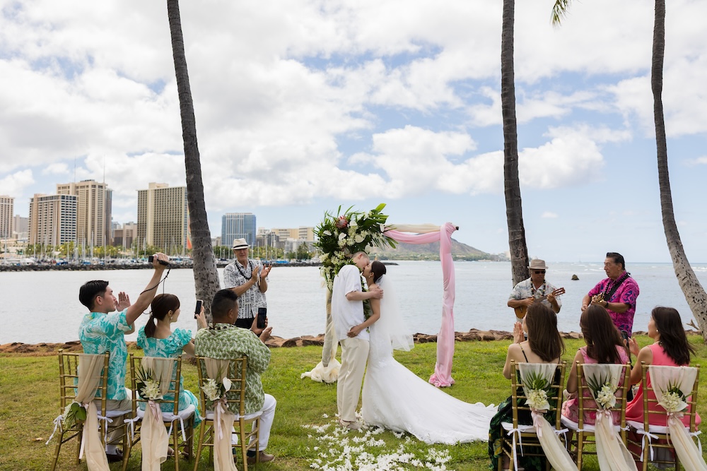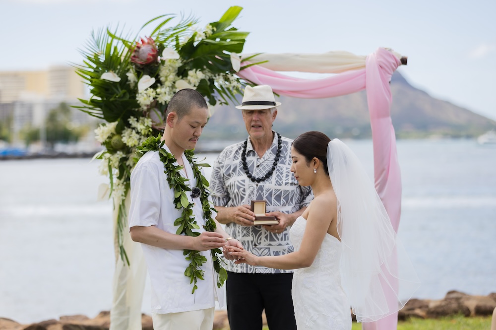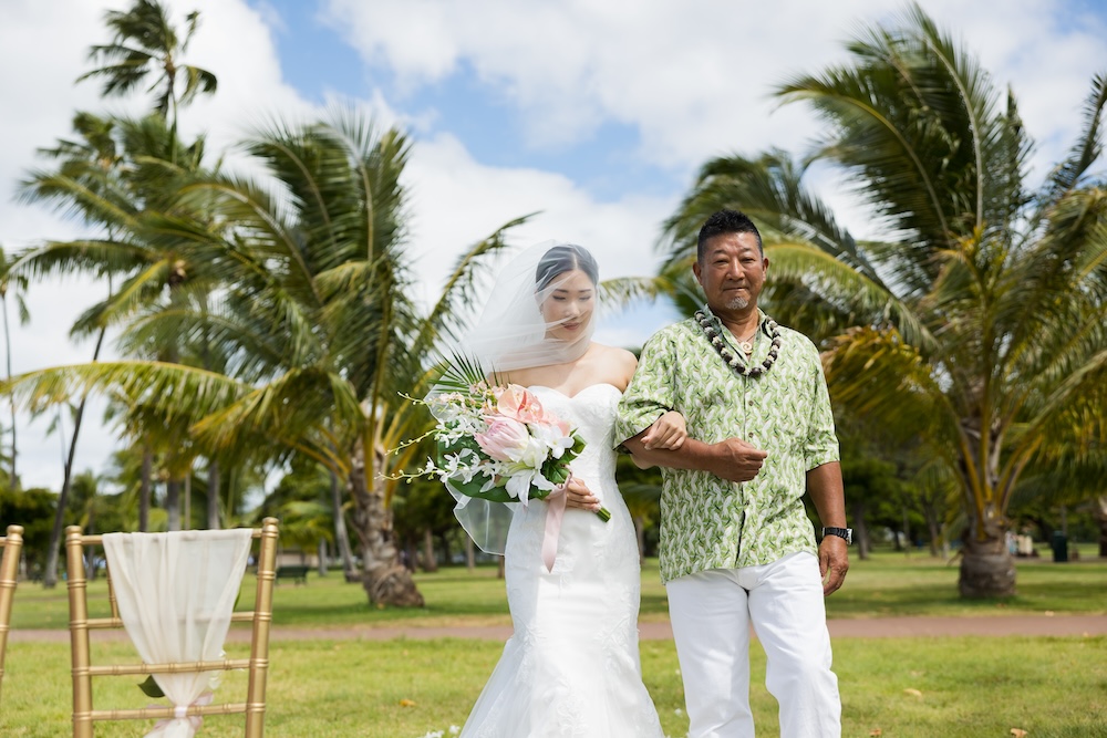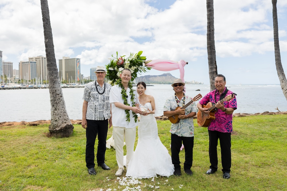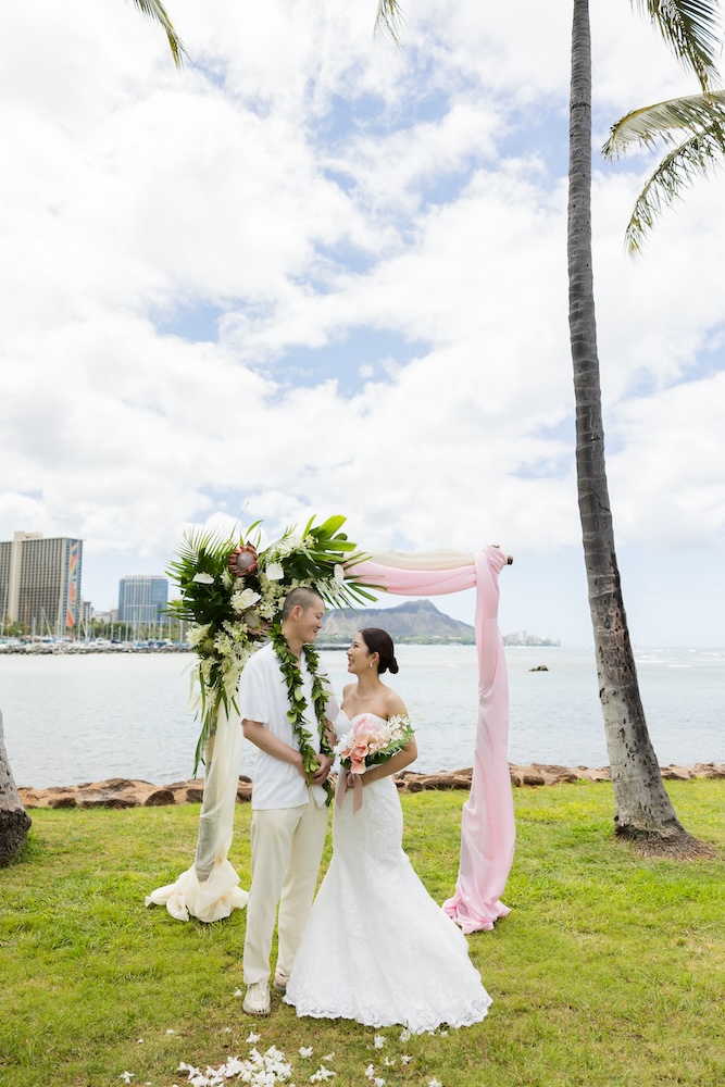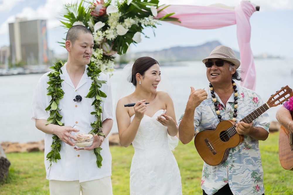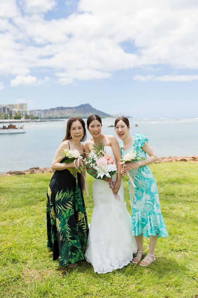 2025.6.13 マジックアイランド+オーキッズ ★Voice★ 投稿者:kaori 投稿公開日:2026/02/22 投稿カテゴリー:お客様の声 ハワイオアフ島 ビーチウェディングで人気のマジックアイランド新郎様やご家族とのファーストミートの前にご準備された新婦様からのお手紙に全員が感動ゲスト参加型の結婚証明書やハワイらしいコーディネートもこだわりのポイントです Movie Date 挙式会場:マジックアイランドレセプション会場:オーキッズフォトツアー:アラモアナビーチ、カピオラニパーク、カイマナビーチフォトグラファー:Jason(Visionari)ビデオグラファー:Starr Win Projectsフローリスト:Floret Mメイクアップアーティスト:Style Free Mihoウェディングプランナー:Kaori Voice Q.1 レアウェディングを選んだ理由があれば教えて下さい。1日1組限定、そして型にはめられたありふれた式ではなく、自分の理想とするオリジナルな結婚式が出来ると感じたから。Q.2 実際に挙式の日を迎えられていかがでしたか?挙式の日の中で一番印象に残っている出来事などあれば教えて下さい。ファーストミート、ファミリーミートのみんなの顔や反応が、一番印象に残っています。Q.3 ハワイウエディングをして良かったということがあれば教えてください。ハワイらしい自然の中で式が出来た事、海の目の前で出来た事。またカジュアルな感じでリラックスして楽しめた事。Q.4 当日お手伝いさせていただいたスタッフはいかがでしたか?とっても優しく、そして楽しい雰囲気を作ってくれ、最高なチームでした!Q.5 挙式のご準備はいかがでしたか?自分がやりたい事が少しずつ形になっていったので、大変でしたが楽しかったです。Q.6 ハワイウエディングでこだわったところはどこですか?ロケーション、テーブルコーディネート、結婚証明書Q.7 ご準備されたアイテム類について教えてください。ブランド名や準備方法などウェディングドレス:sustina dressタキシード:アロハシャツ→two palmsペーパーアイテム:モンステラの紙に名前を書く、手紙サンクスギフト:はちみつ、刻印入りスプーンなどQ.8 参列者にはドレスコードをお伝えされましたか?またどのようにご準備されましたか?リゾートワンピースやムームー、アロハシャツQ.9 先輩カップルとして、未来の新郎新婦様にひとことアドバイスをお願いします。悔いの残らないよう思いっきり楽しんでください! おすすめ 2020.02.09 モアナルアガーデン人前式★Voice★ 2022/03/20 2020.01.21 セントラルユニオン中聖堂 + カフェジュリア★Voice★ 2021/06/14 2023.6.24 ハレクラニコートヤード+オーキッズ★Voice★ 2024/07/05