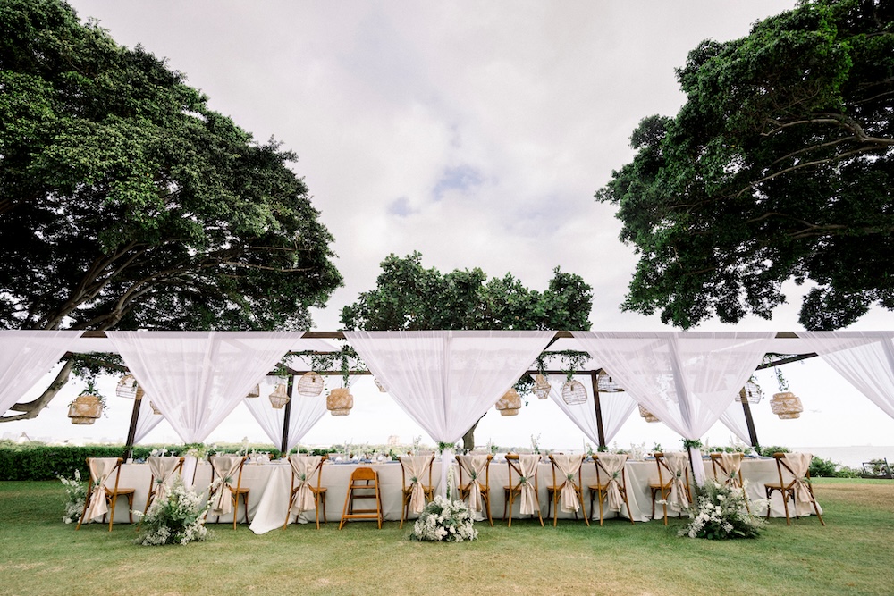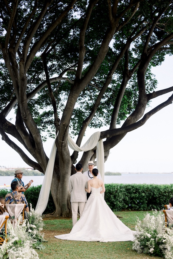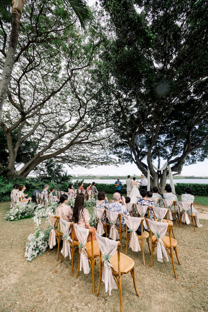 2025.6.18 ハナラニガーデン 投稿者:kaori 投稿公開日:2026/03/14 投稿カテゴリー:お客様の声 ハワイのプライベートガーデンで大切な方に囲まれて、ゆっくりと過ごすガーデンウェディング。プライベートガーデンだからこそ実現できる、こだわりのコーディネートで彩られた1日。挙式はホワイト×グリーンのお花でシンプルかつ上品に。新婦様のブーケには優しいピンクをさりげなくアクセントとして添えました。挙式後のガーデンパーティでは、ダスティブルーを加えてほんの少しの遊び心をプラス。色合いの変化が、時間とともに移りゆく空気感をより一層引き立てます。そして夜へと続くレセプションでは、ガーデンに灯るランタンの柔らかな光に包まれながら、ハワイアンミュージックの音色と心地よい夜風の中でガーデンパーティをご堪能いただきました。お二人にとっても、ゲストの皆様にとっても、心に残る忘れられない1日となりました。 Date 挙式会場:ハナラニガーデンレセプション会場:ハナラニガーデンフォトグラファー:Ryanフローリスト:Jardin Du Reveメイクアップアーティスト:Style Free Mihoウェディングプランナー:Koari おすすめ 2023.1.24 ワイアラエビーチ ★Voice★ 2023/12/15 2024.9.21 カハラホテル プルメリアグローブ★Voice★ 2025/01/03 2019.05.16 セントラルユニオン大聖堂 + ビーチハウス★Voice★ 2019/12/18